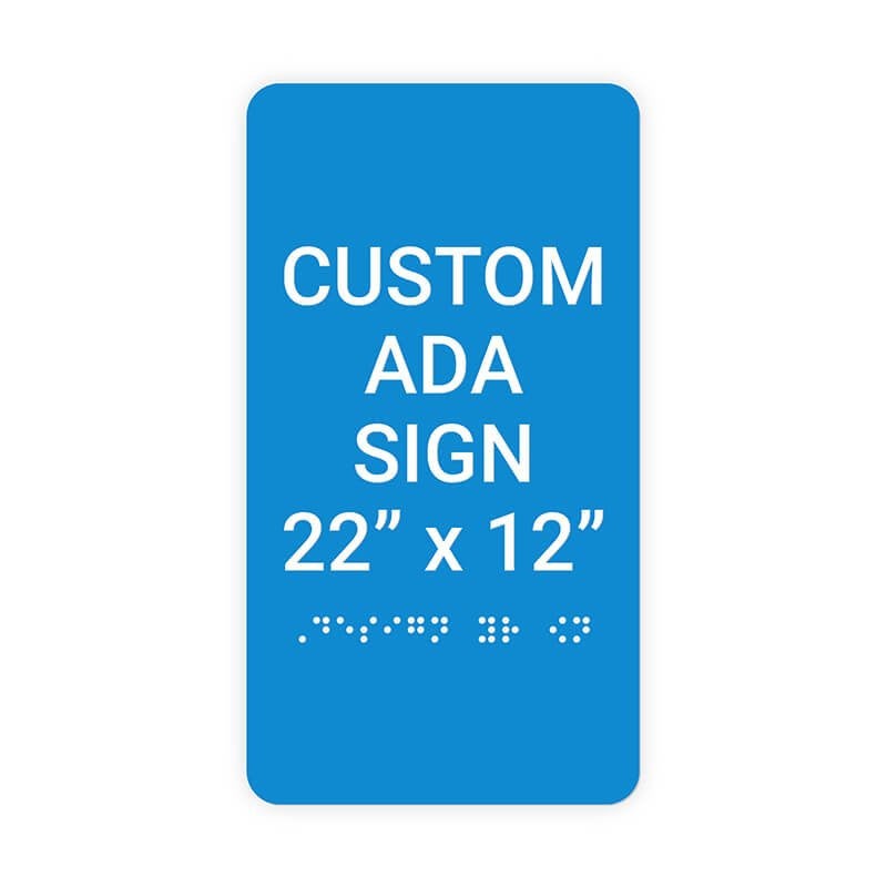 - Custom Braille: Our design wizard allows you to translate any text into Grade 1 Braille. When produced, the text will be translated to Grade 2 Braille to ensure that your sign is ADA-compliant.