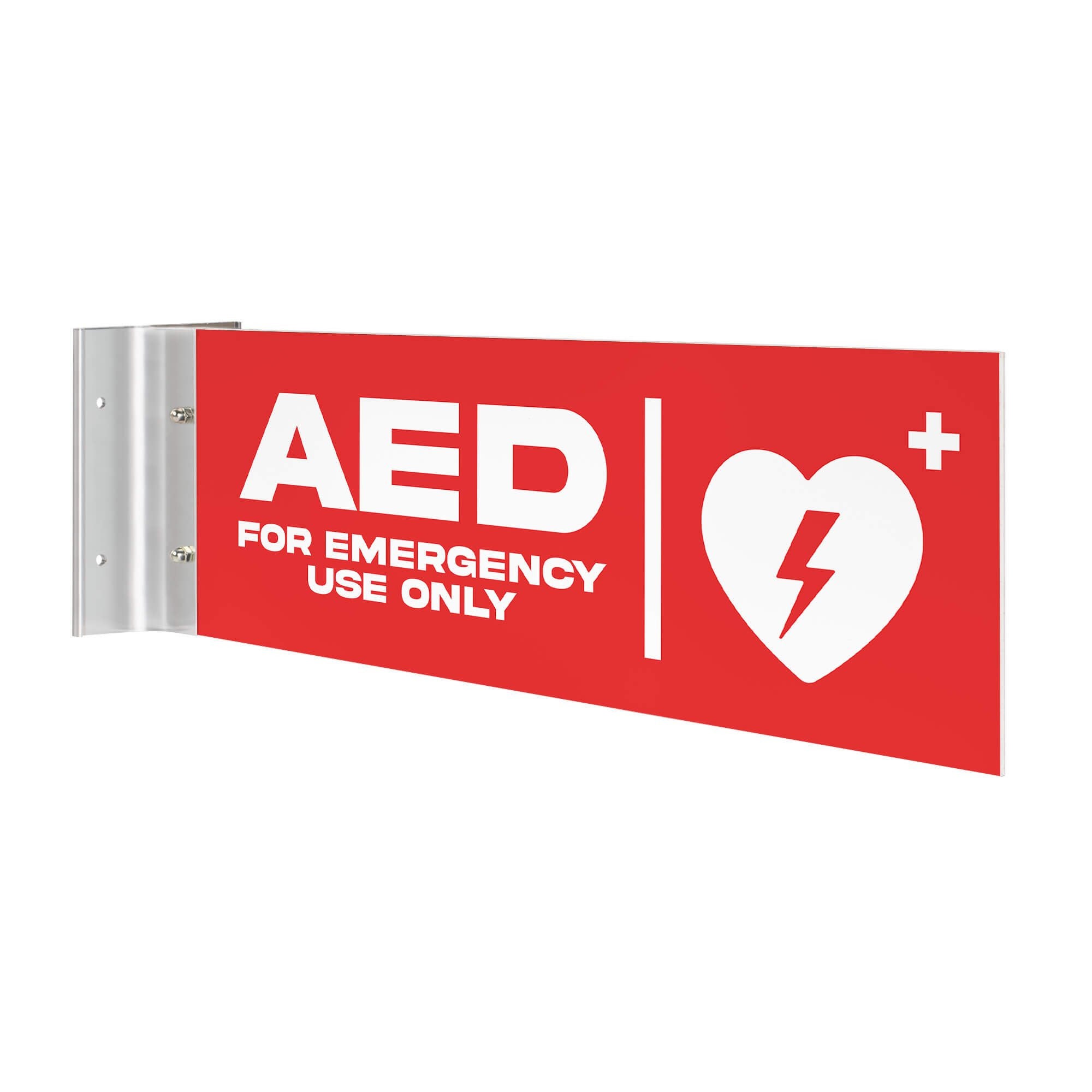 This AED projection sign reinforces that the equipment is intended for emergency use only, helping prevent misuse while ensuring fast identification during critical moments.