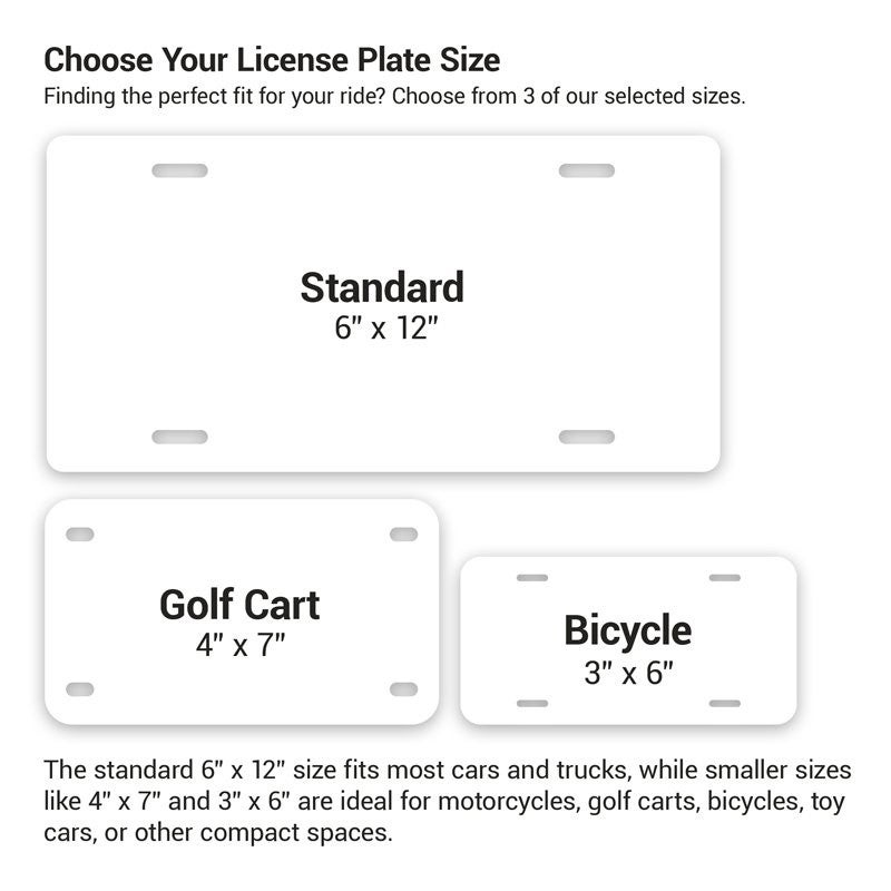 - Size: 6" x 12" - Standard US license plate sizing