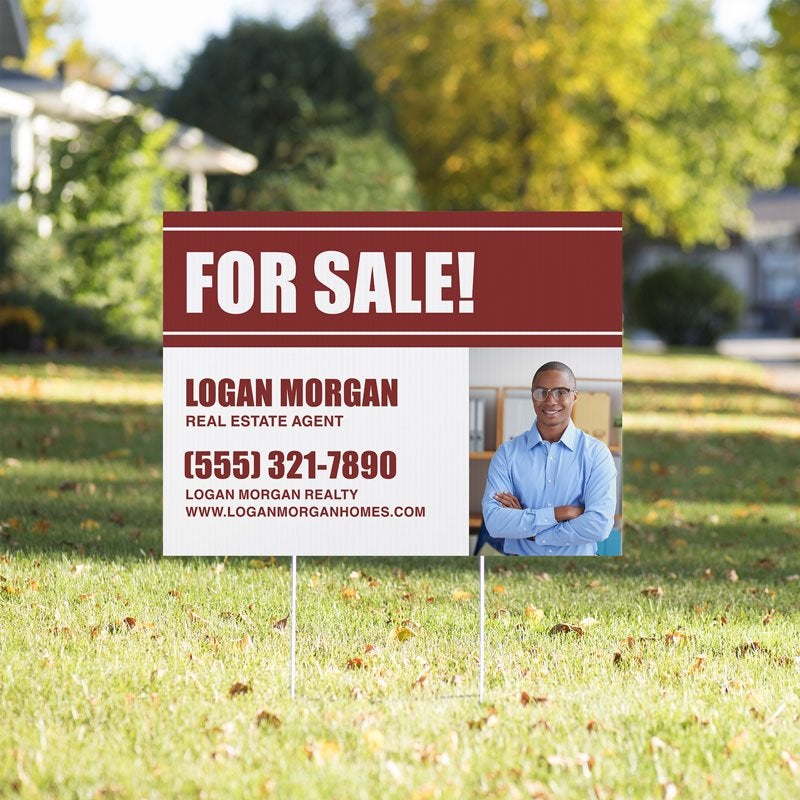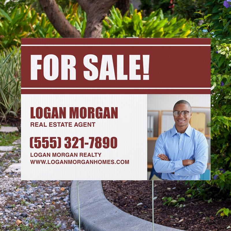 This Custom Real Estate For Sale Yard Sign is designed to capture attention and give your listings a polished, professional presence. Featuring a bold “FOR SALE!” headline, personalized contact details, and your professional photo, it’s the ideal marketing tool for agents who want to stand out and drive leads with a personalized touch.