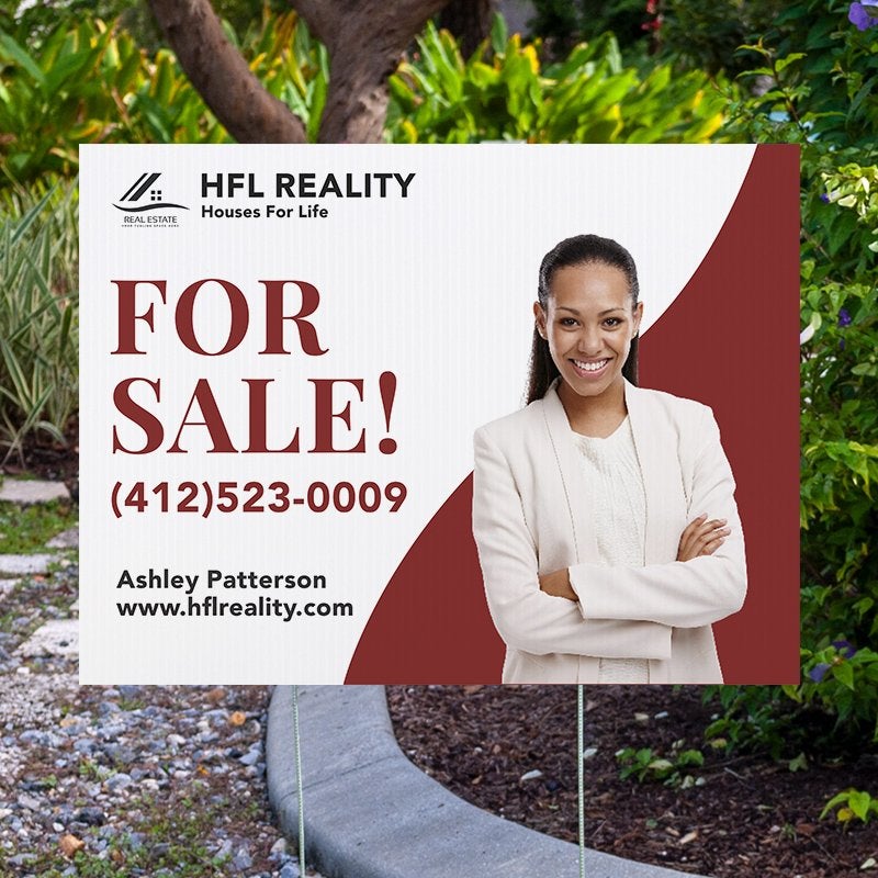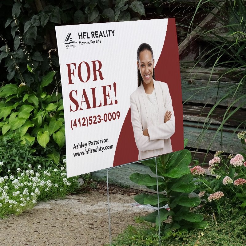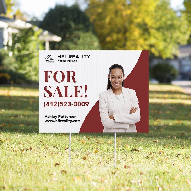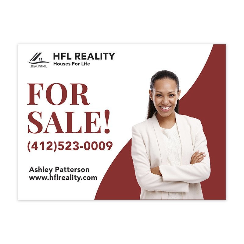 This Custom Real Estate For Sale Yard Sign offers the perfect way to spotlight your property and real estate services with a sharp, professional touch. Featuring your photo, agency logo, and clearly displayed contact information, this sign ensures you make a lasting impression with potential buyers from the moment they pass by.