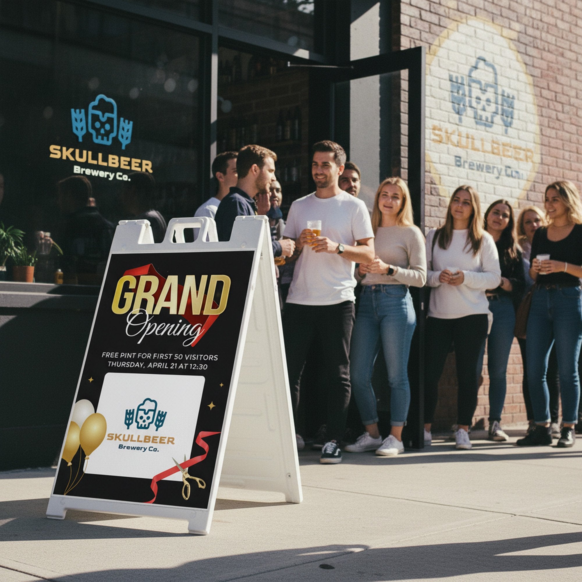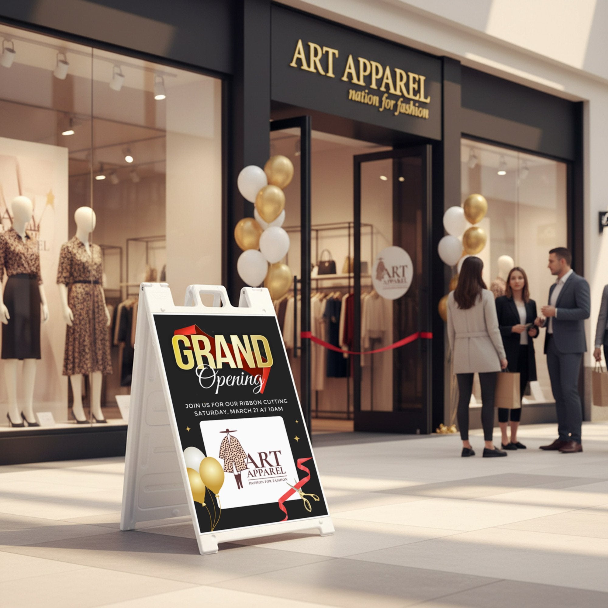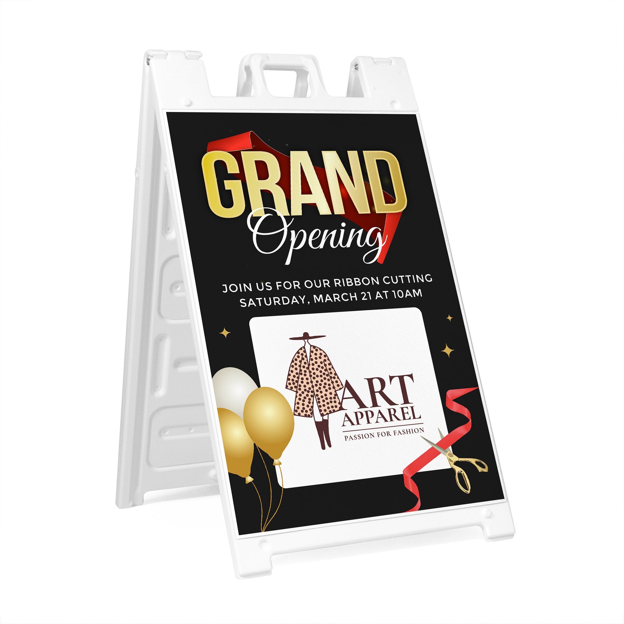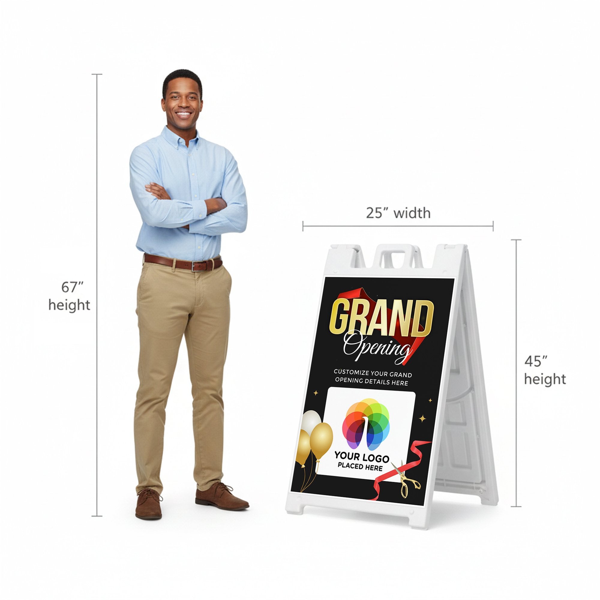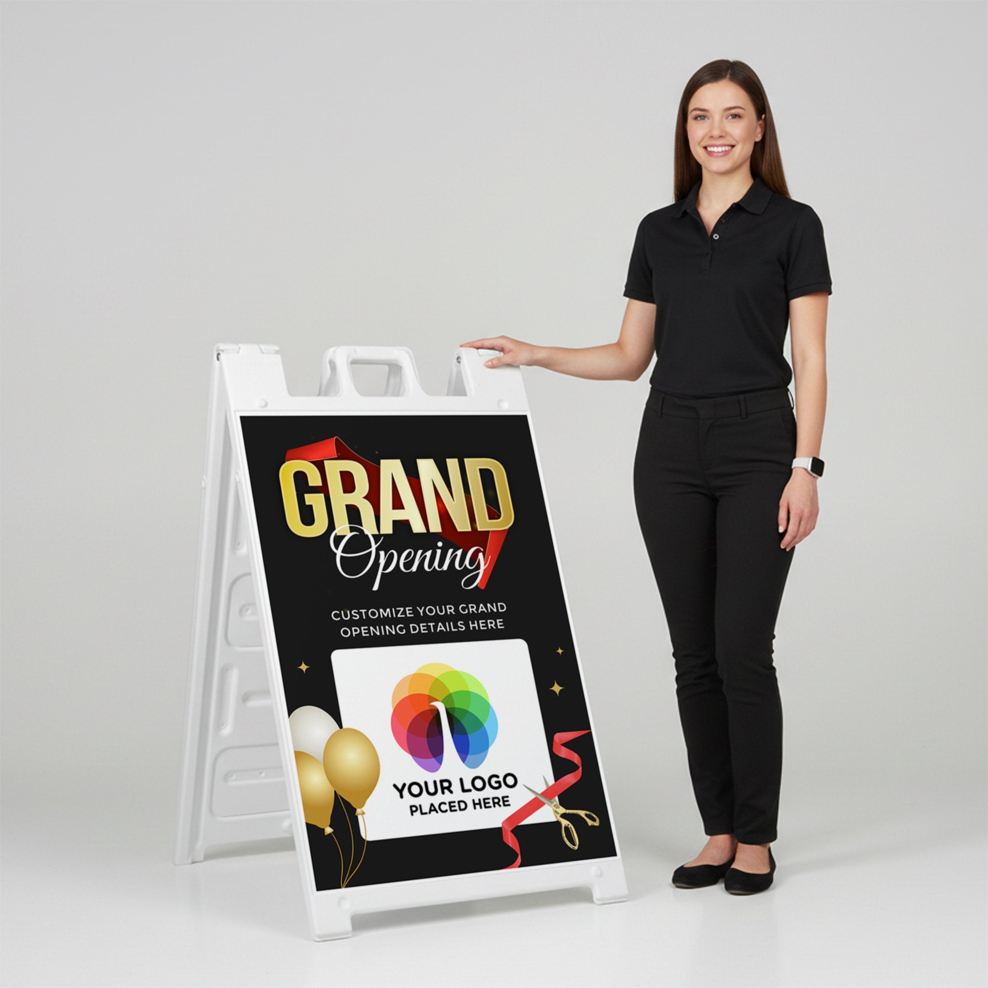 This design gives you complete flexibility to tailor the sign to your specific opening event. Add your business name, promotional message, or event details in the editable text section while uploading your logo or custom artwork in the designated design area. Whether you are opening a retail store, restaurant, salon, or hosting a special launch event, this A-frame sign ensures your message is clear, welcoming, and visually engaging for passing customers.