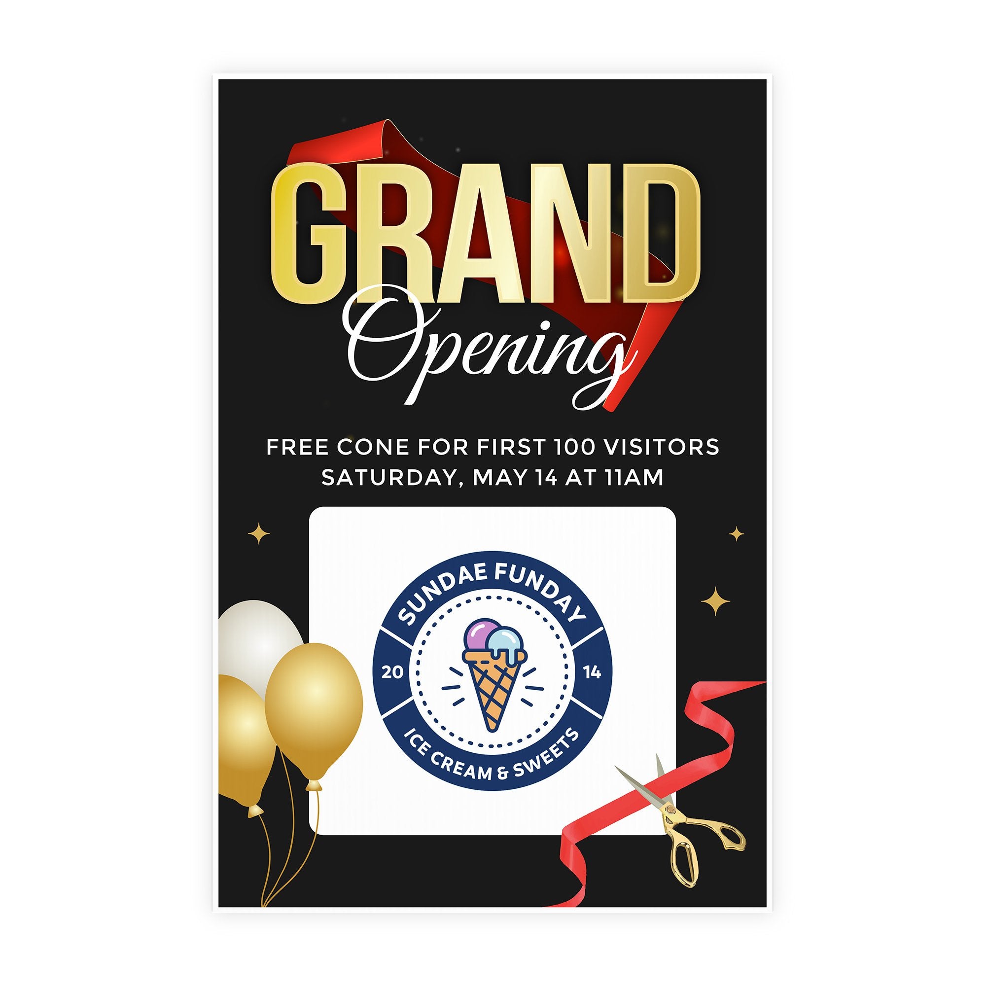 Celebrate your launch in style with this customizable Grand Opening A-Frame sign, designed to capture attention and set a professional tone for your business debut. The elegant “Grand Opening” header paired with a customizable message area allows you to share key details such as opening dates, special offers, event times, or exclusive promotions. With the ability to upload your own logo or design, this template helps you create a sign that feels fully aligned with your brand and event experience.