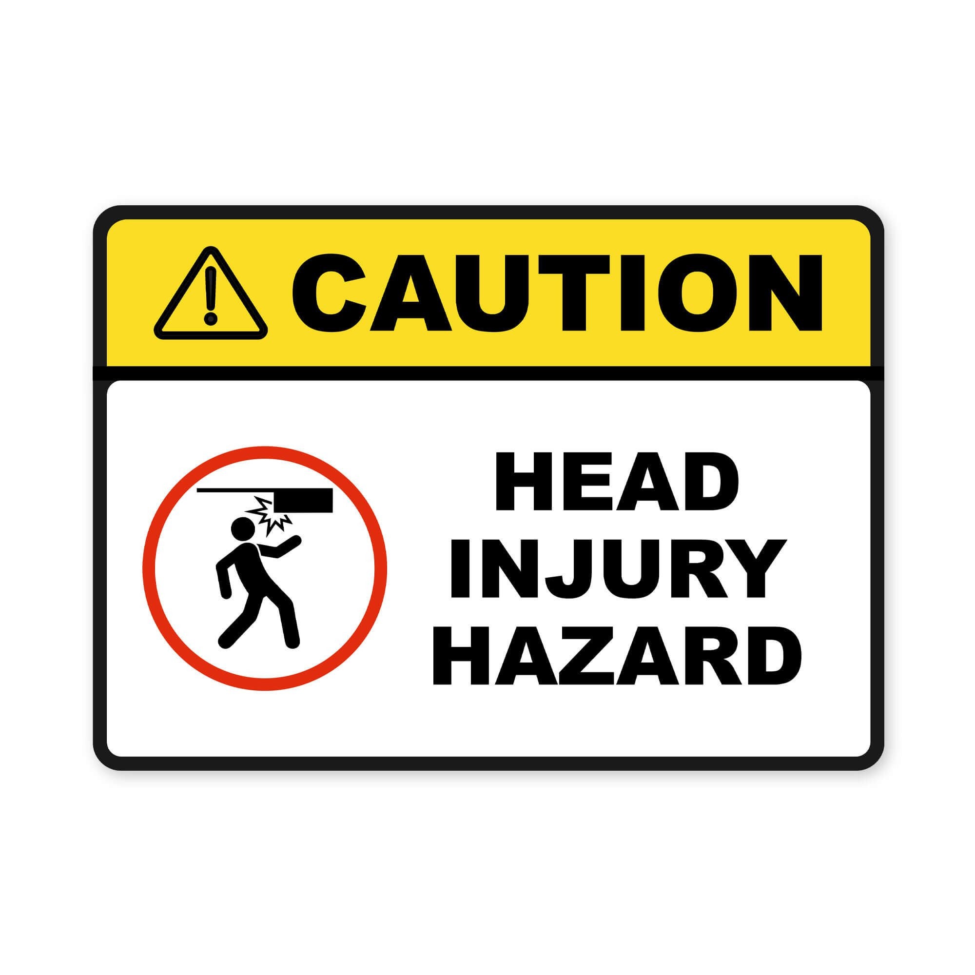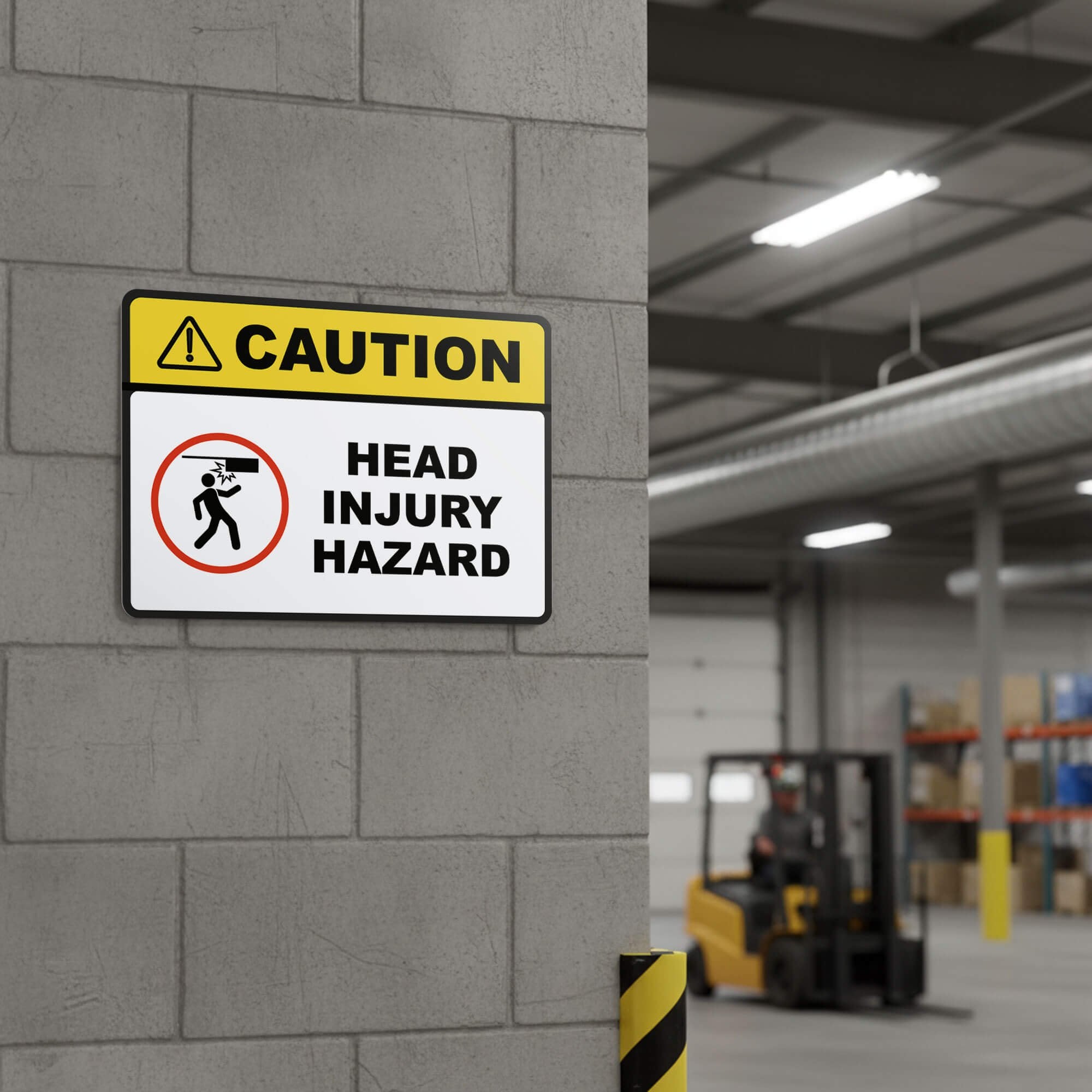 - Important Messaging: Sign reads “Head Injury Hazard” with a helpful pictogram next to it.