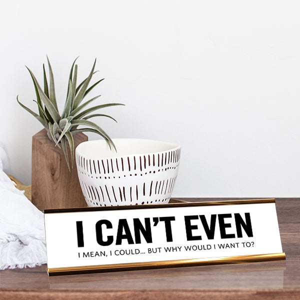 I Can't Even Engraved Plastic Funny Desk Plate with Aluminum Holder