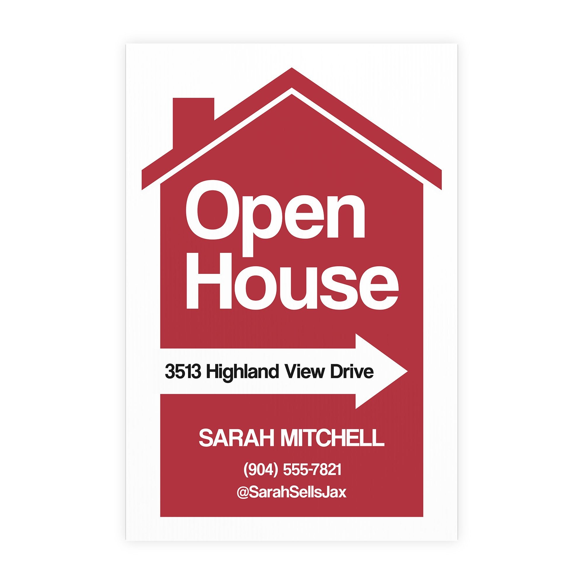 Direct potential buyers and visitors with ease using this customizable Open House A-Frame sign designed for real estate events and property showings. This template allows you to add key information including the property address, company name, phone number, and website, ensuring guests have all the details they need at a glance while following clear directional guidance.