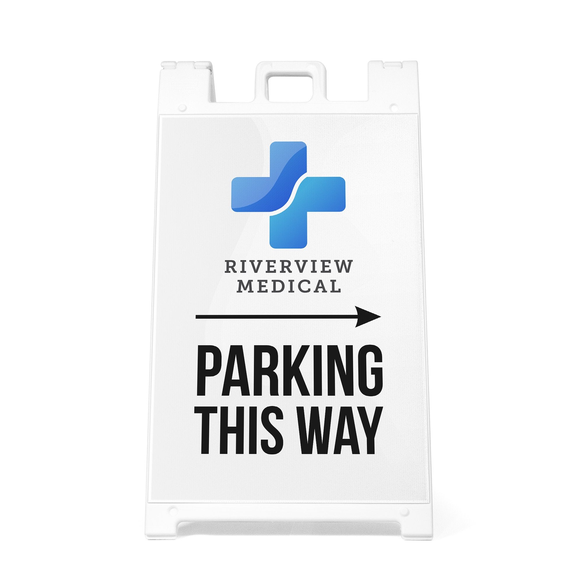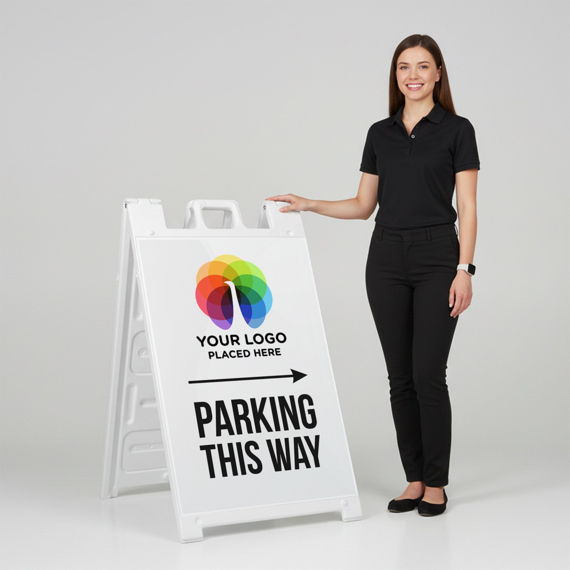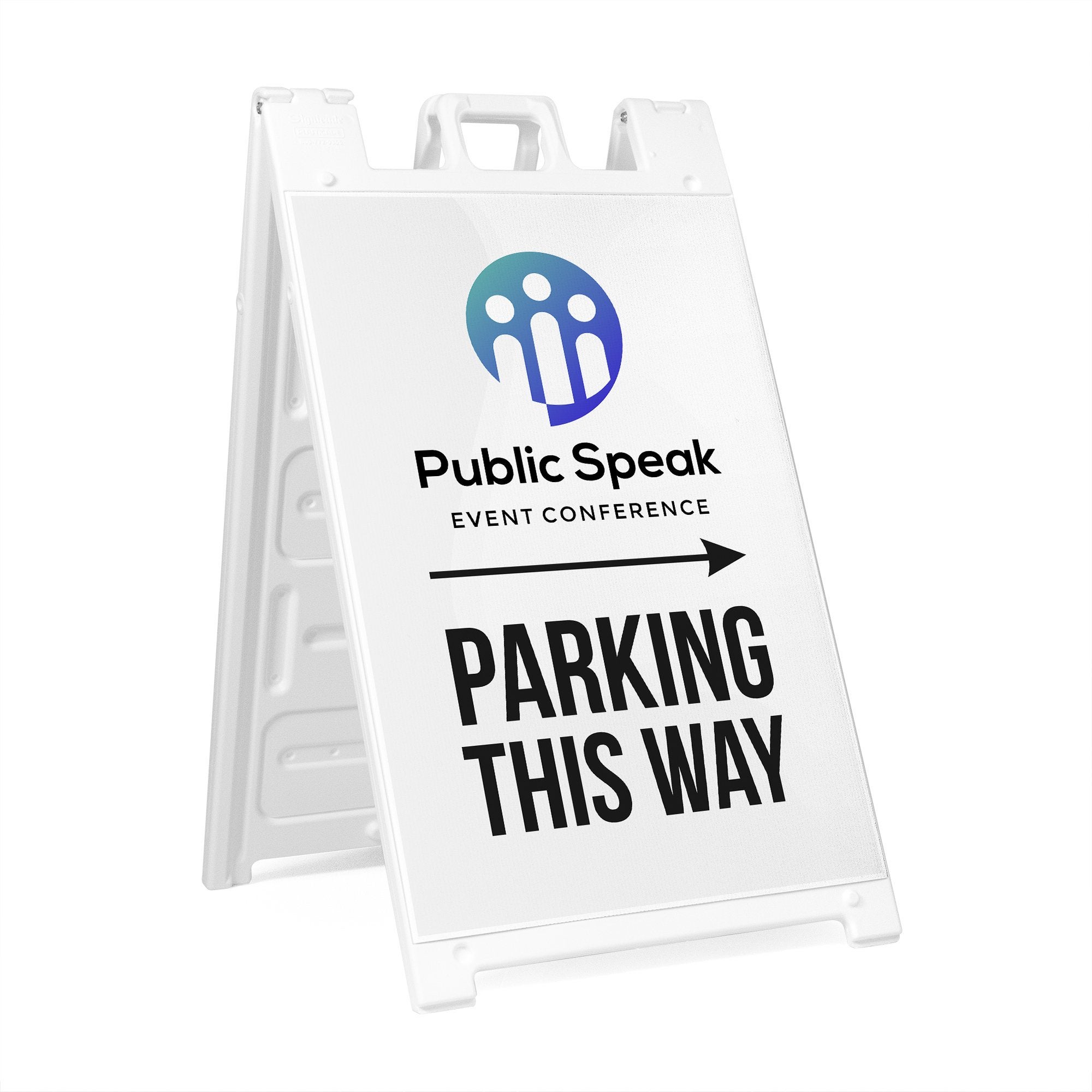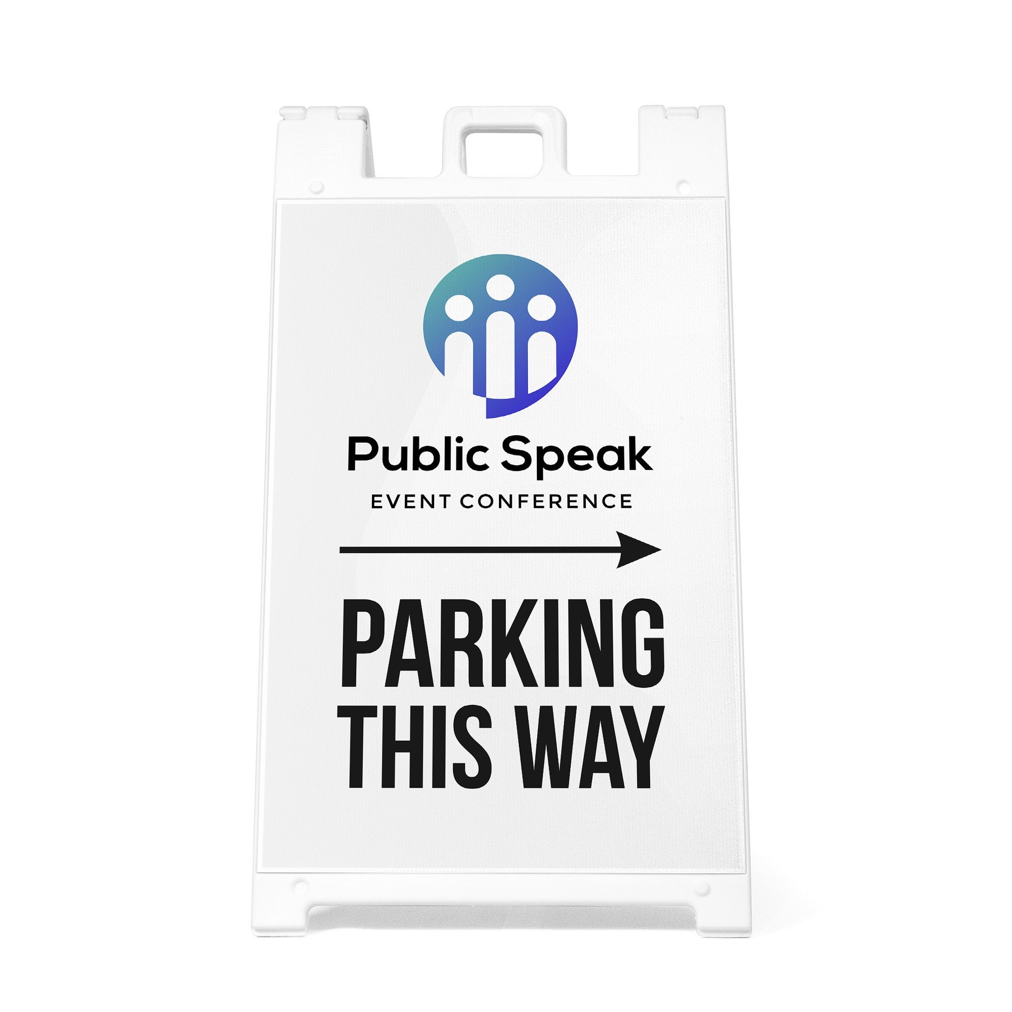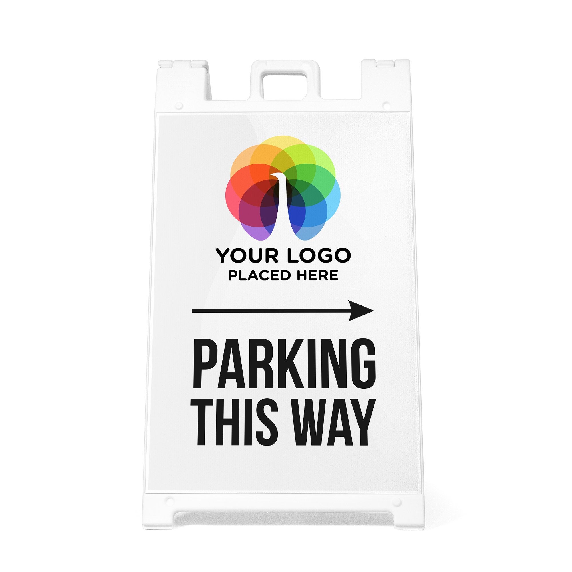 Perfect for retail locations, offices, schools, venues, and temporary event setups, this double-sided A-frame sign improves traffic flow and reduces confusion for drivers and guests. The customizable design and replaceable inserts make it easy to reuse the sign for different events, locations, or seasonal needs while maintaining a consistent and professional appearance. It is a practical solution for any business or organization that needs clear, branded parking direction signage.