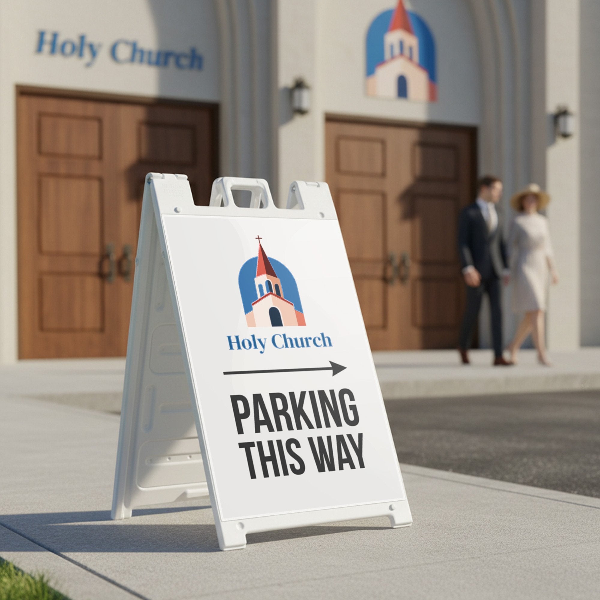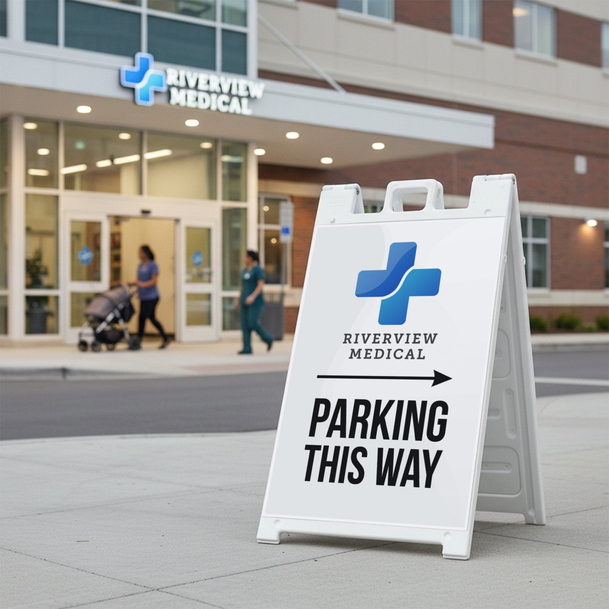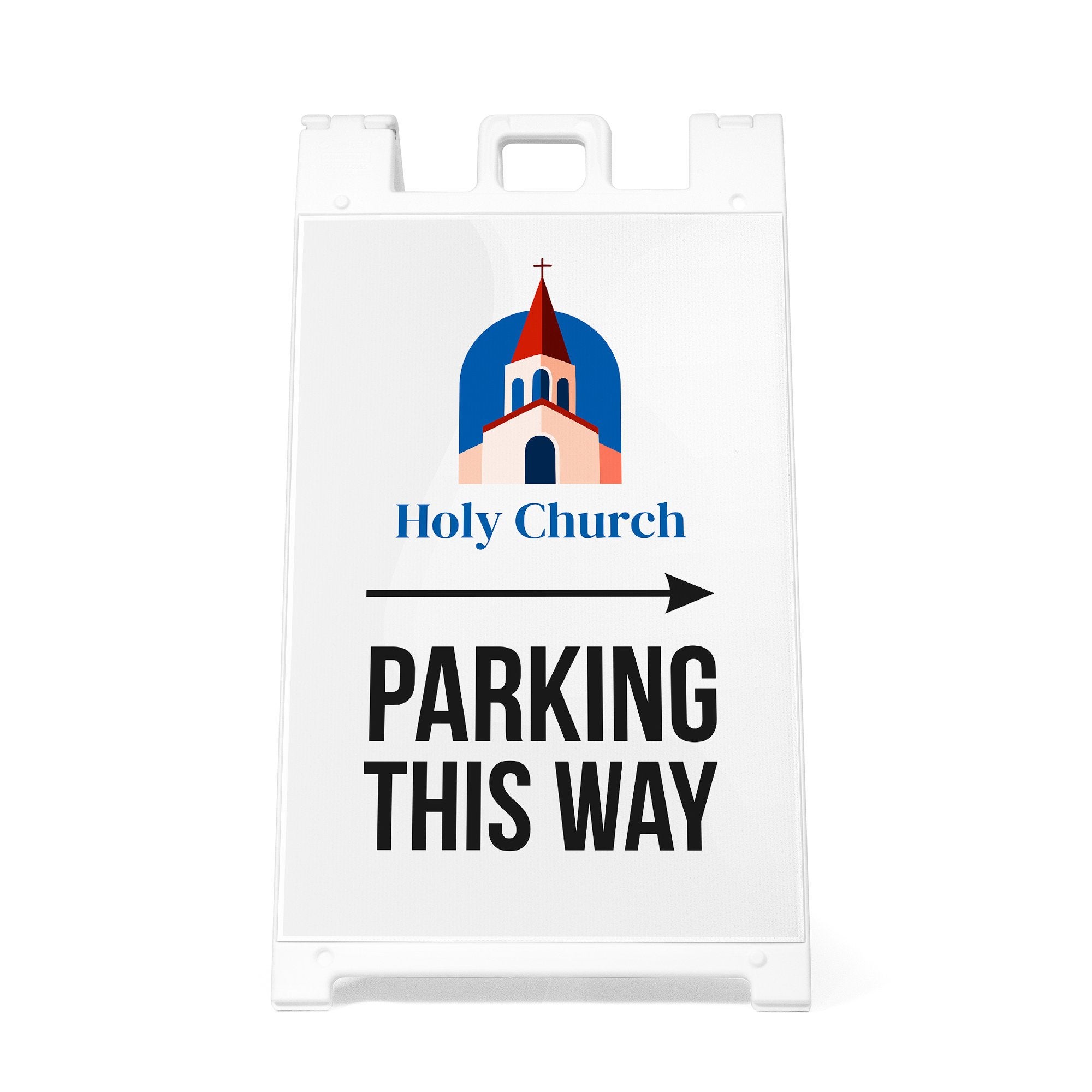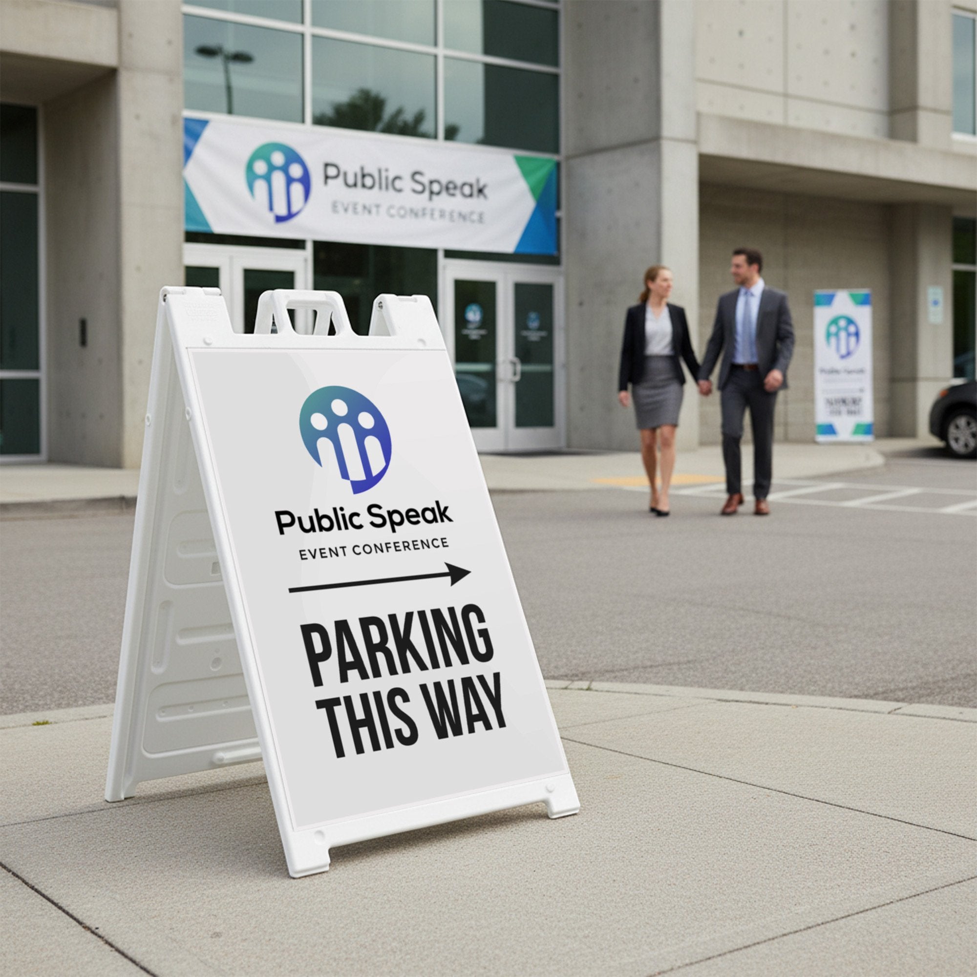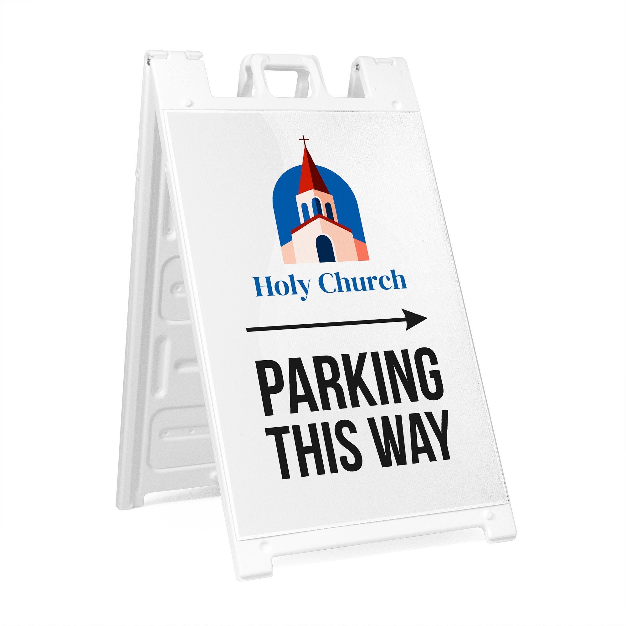 Perfect for retail locations, offices, schools, venues, and temporary event setups, this double-sided A-frame sign improves traffic flow and reduces confusion for drivers and guests. The customizable design and replaceable inserts make it easy to reuse the sign for different events, locations, or seasonal needs while maintaining a consistent and professional appearance. It is a practical solution for any business or organization that needs clear, branded parking direction signage.