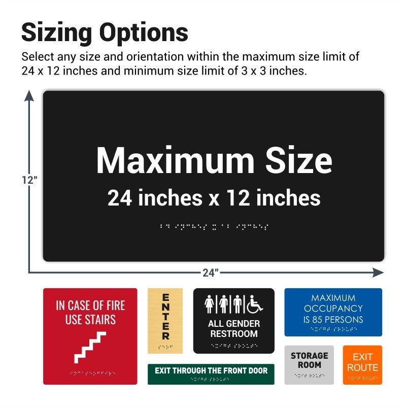 Ensuring compliance is an important task for every business, and we’re here to help! With the ability to create your own custom ADA sign, you can have confidence that all of your signs are compliant, no matter how unique they are! Make a custom sign using any image or symbol you need, and choose from our selection of ADA-compliant fonts. Our design wizard also allows you to translate any text into braille to include on your sign.