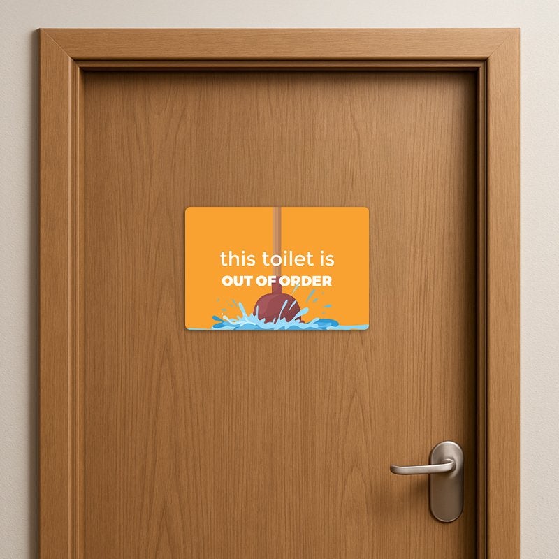 - Clear Message: Displays "This Toilet is Out of Order" in an easy-to-read font.