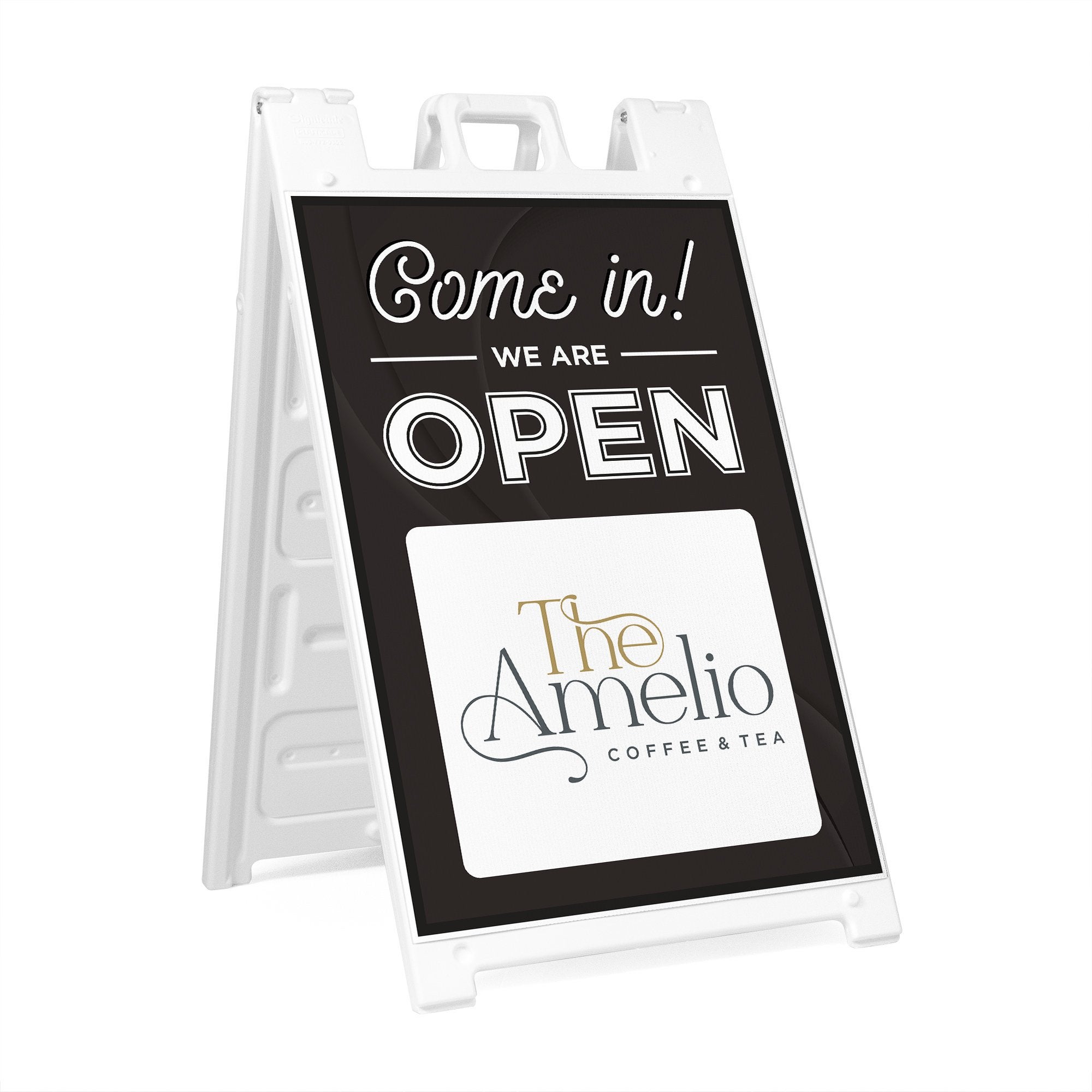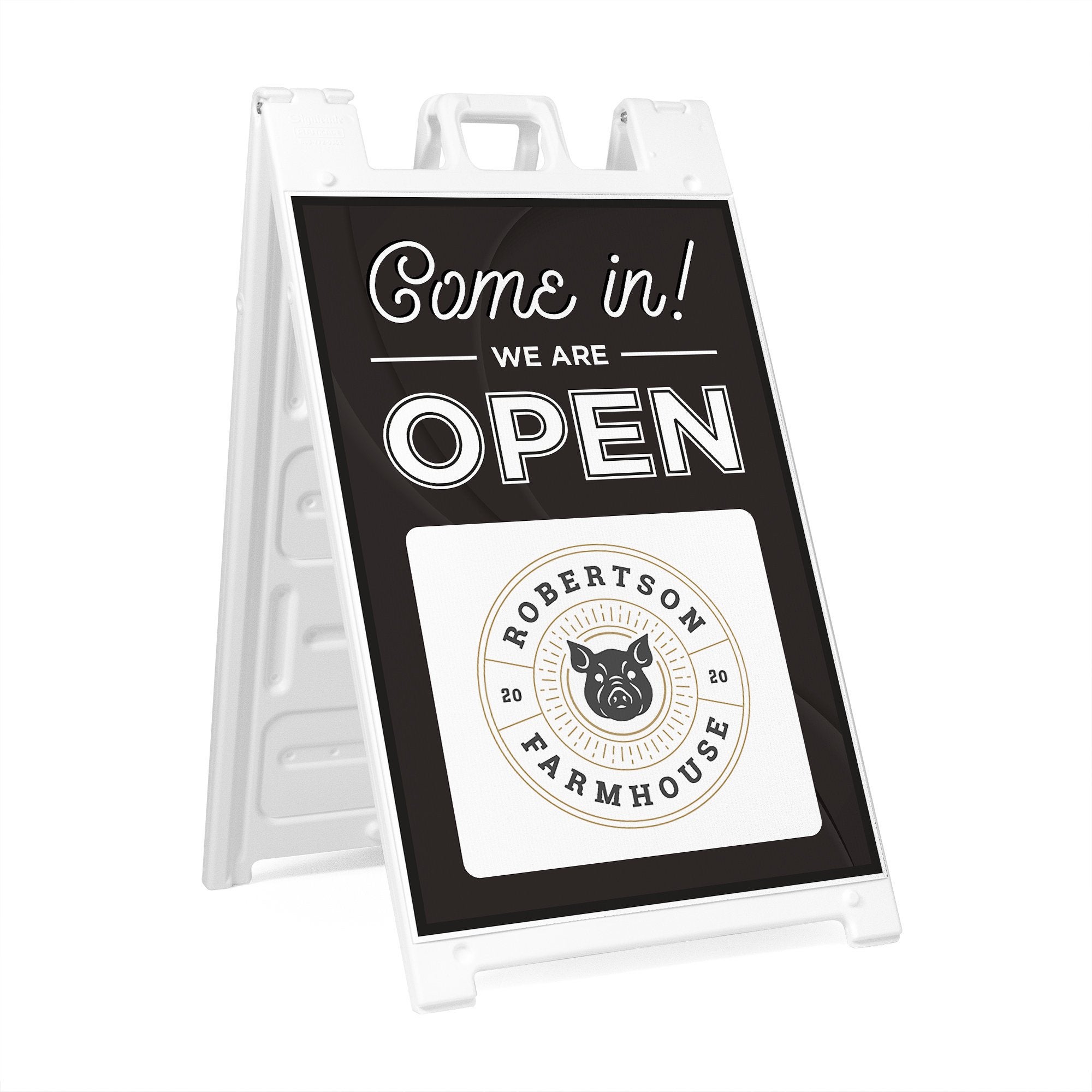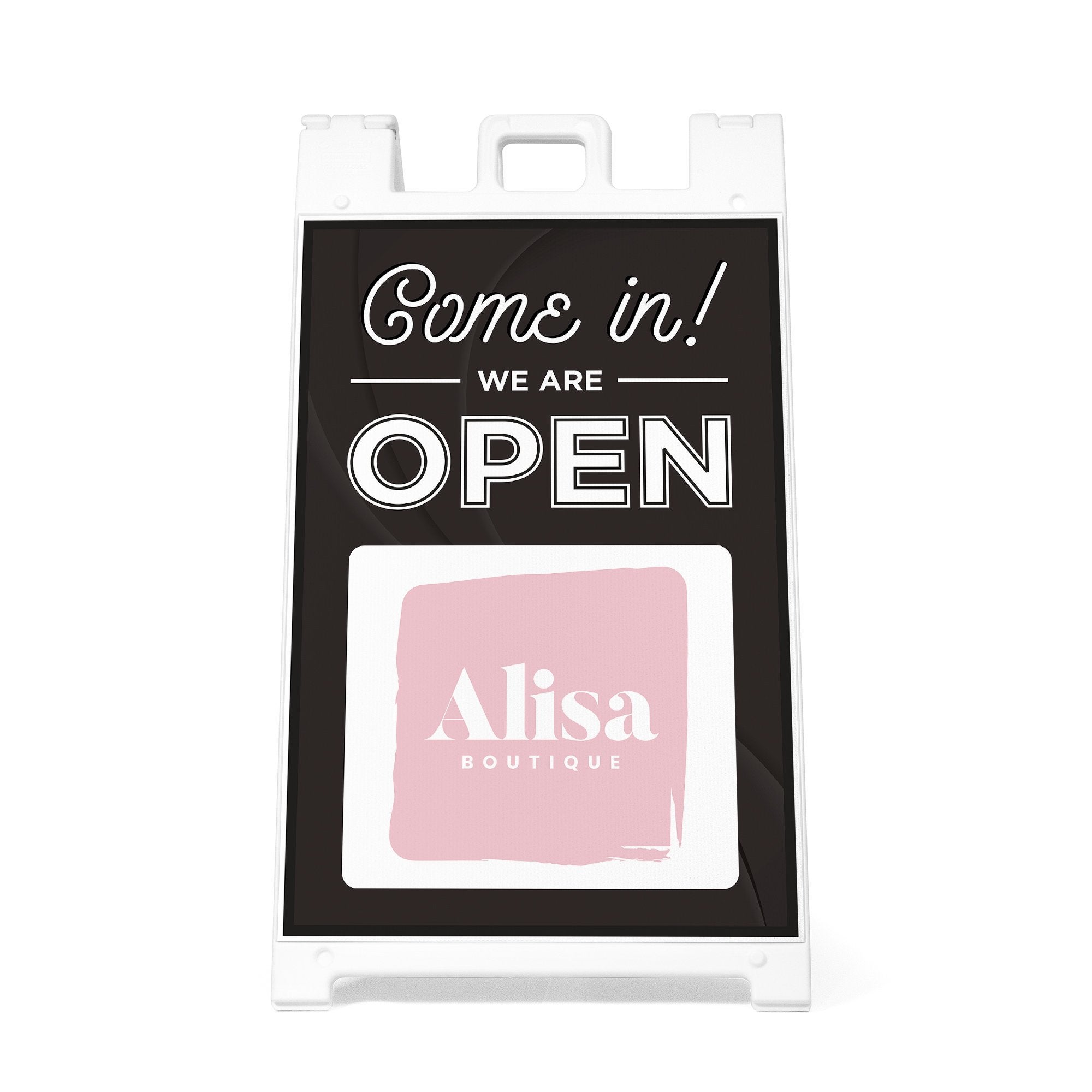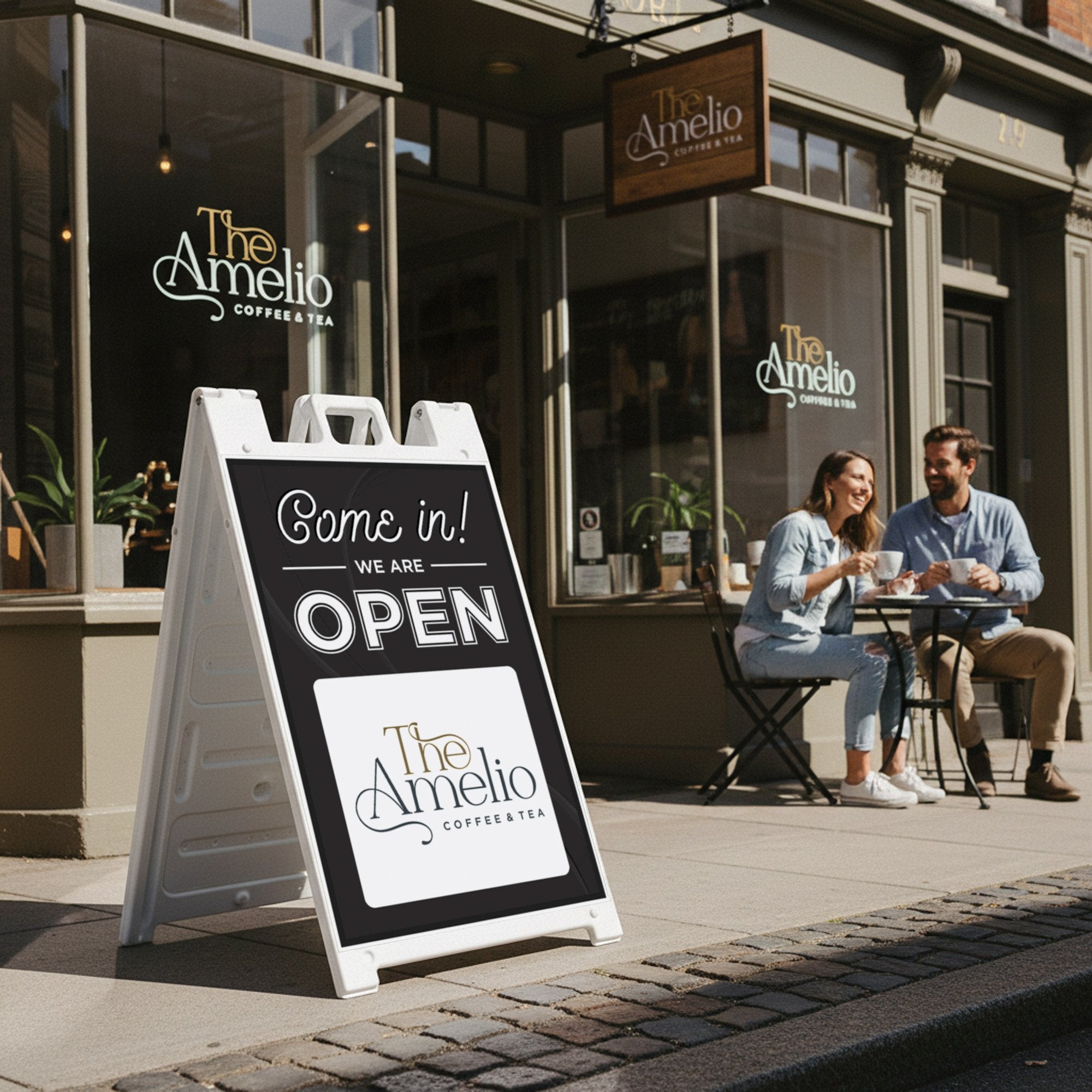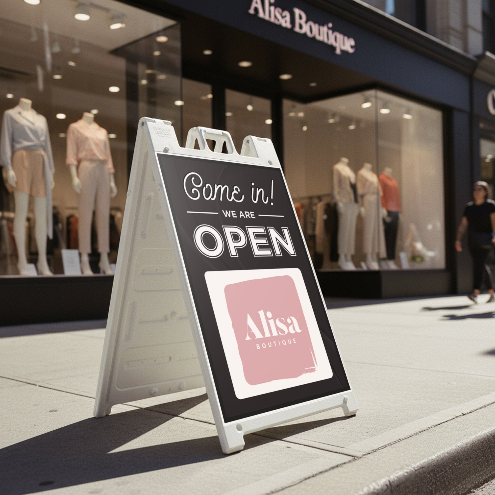 Designed for both indoor and outdoor use, this double-sided A-frame sign keeps your open message visible from multiple directions in high foot traffic areas. The replaceable insert system makes it easy to update branding or messaging as needed, while the portable A-frame structure allows for quick setup, repositioning, and storage at the end of the day. Ideal for retail stores, restaurants, salons, and service businesses, this sign provides a professional and reusable solution for communicating business hours and welcoming guests.